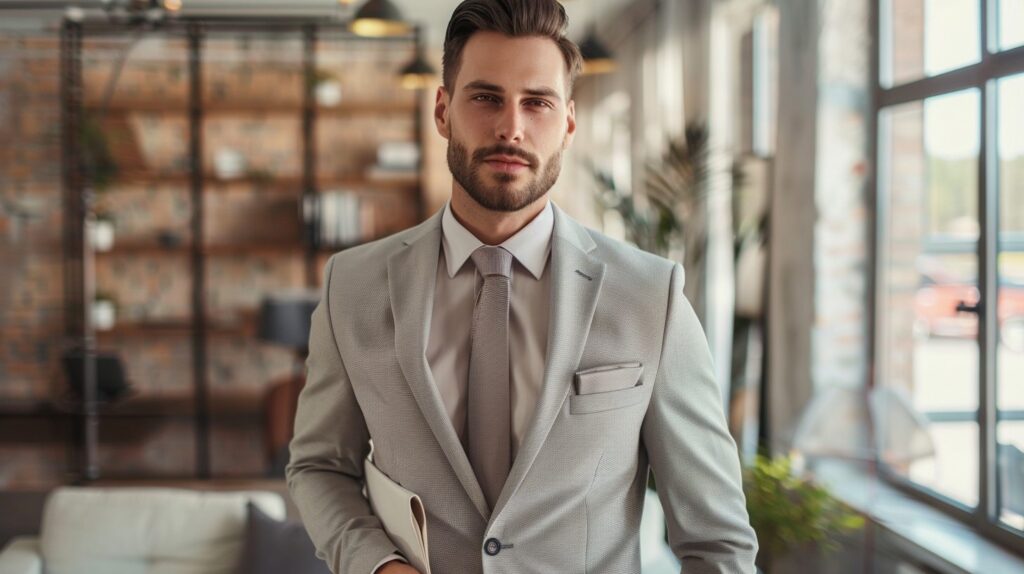 Charcoal gray is softer than black but still formal. It’s perfect for management or office roles that value calm decision-making and leadership. It projects maturity and composure in any interview setting. Wearing suits for job interviews in this color can help you appear both serious and approachable.