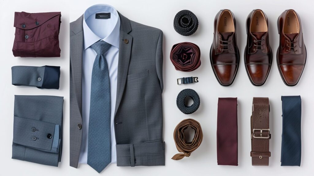 A white or light blue shirt paired with a conservative tie creates a crisp, professional base. Match your leather belt with your shoes, and choose dark, plain socks to keep the look polished.