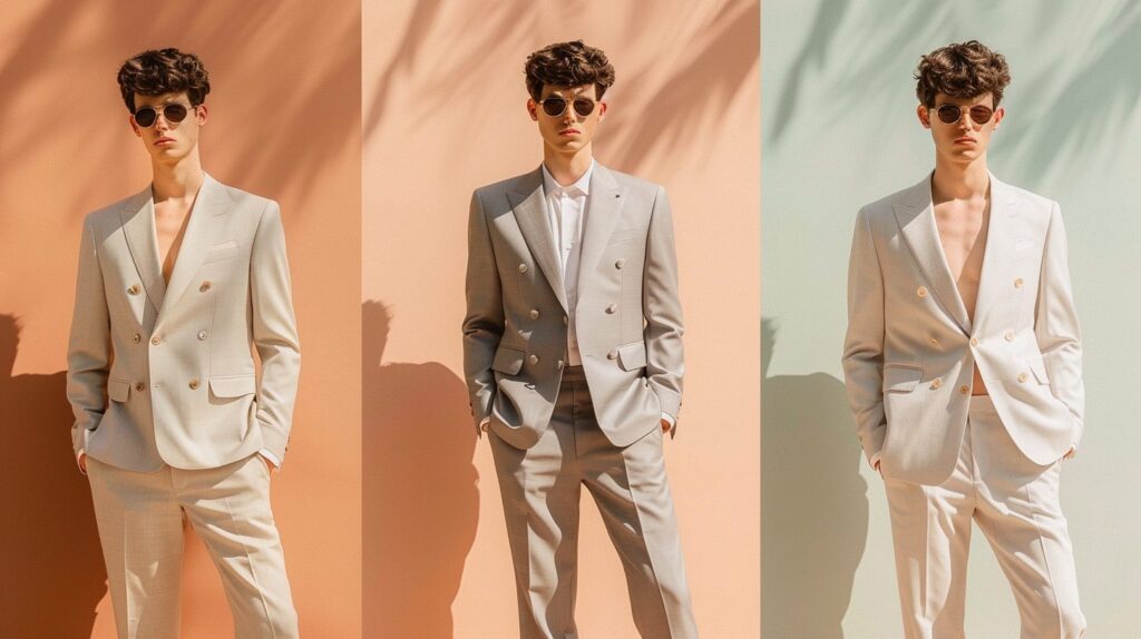 - Spring/Summer: Light fabrics like linen or cotton; light gray, beige, and white keep you fresh. Pastel shirts work well.